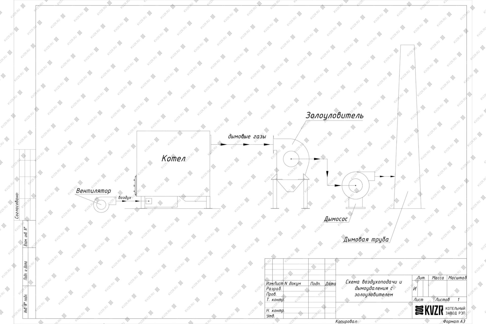 К вспомогательному оборудованию при подключении промышленного водогрейного котла КВр относят - щит управления котлом, насос циркуляционный, насос подпиточной воды, бак запаса воды, расширительный мембранный бак, дымовую трубу, систему газоходов и дымосос, золоуловитель (по желанию).