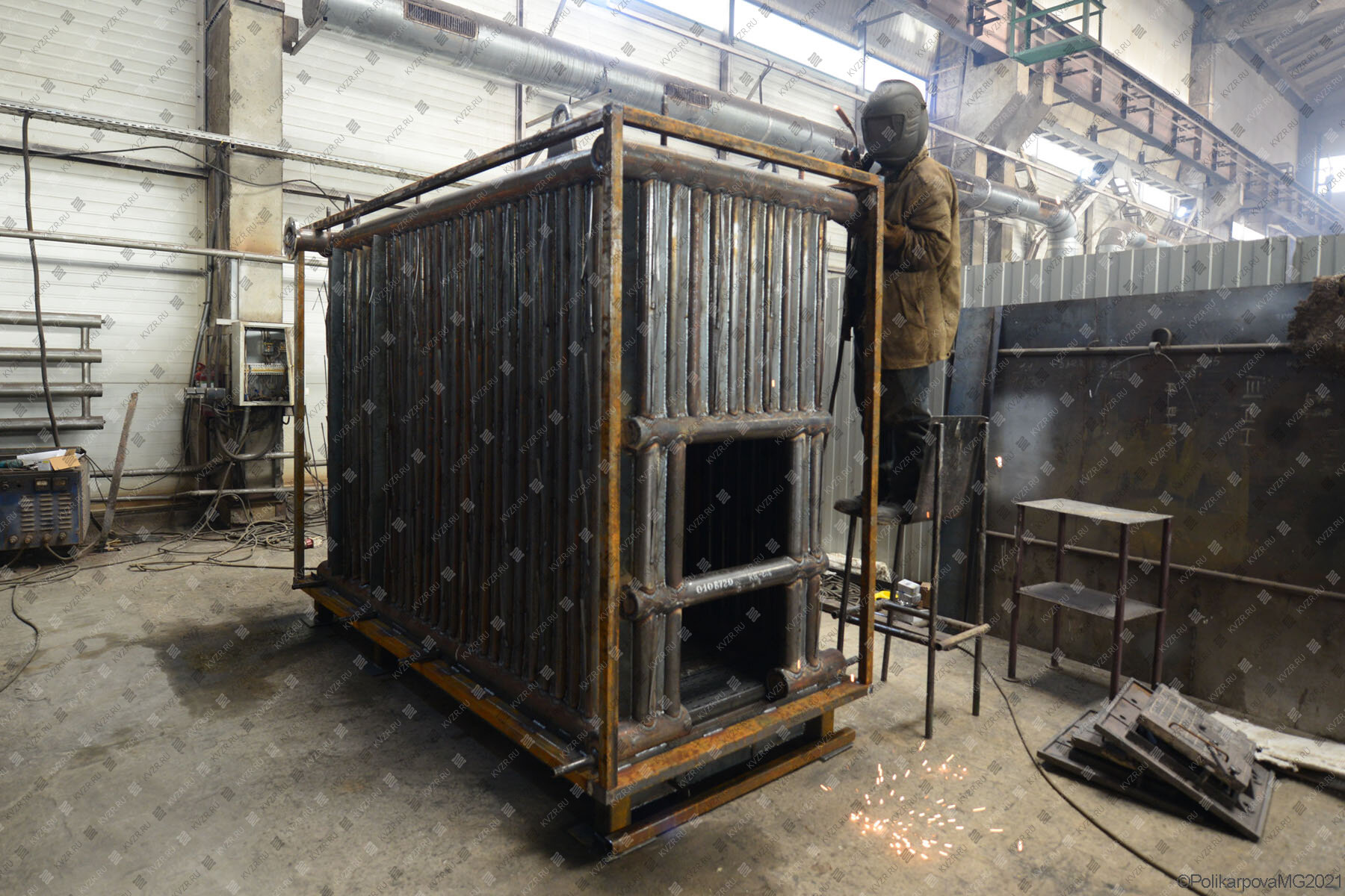 Топка ОУР с водяными колосниками – это низ топочной трубной части агрегата. Водяные колосники, на которых происходит сгорание топлива, представляют собой ряд труб, по которым движется нагреваемая в котлоагрегате вода, между которыми вварены полосы металла с отверстиями для подачи воздуха в топку. За счет движения теплоносителя и воздуха трубы топки охлаждаются. Маленькие отверстия в полосе не дают проваливаться в зольник недогоревшему топливу.