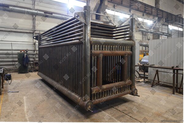 Топка котла состоит из собирающих и раздающих коллекторов, соединенных стальными трубами, марки сталь 10 и 20. Расстояние между трубами топочного блока заваривается стальной металлической полосой обеспечивая полную герметичность котла и исключая проникновение продуктов сгорание в котельный зал при работе с надувными импортными горелками. На фронте топки изготавливается дверка для обслуживания топочной камеры. В дверке изготавливается отверстие с креплением под горелку. Для наблюдения за топочным процессом на фронте котлоагрегата, имеется гляделка со смотровым стеклом.