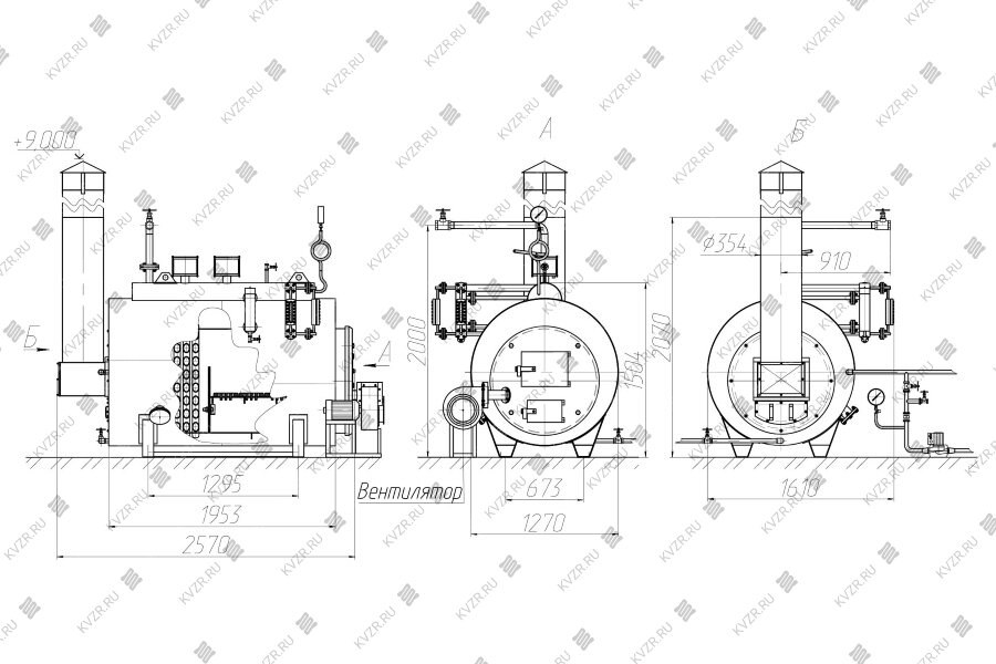 На задней крышке в основании дымовой трубы выполнен предохранительный взрывной клапан. Образующиеся в топочной камере продукты сгорания проходят конвективный пучок труб и выводятся через трубу дымовую, установленную на корпусе в хвостовой части агрегата.